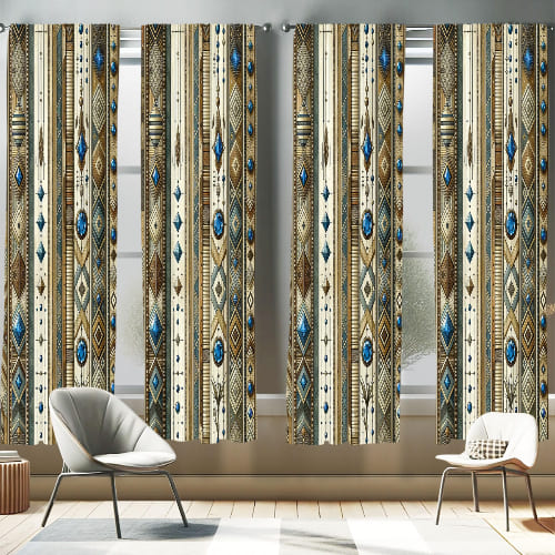 Dieses vierteilige Vorhang-Set bietet eine perfekte Kombination aus blickdichtem Sichtschutz und lebendigen Boho-Prints, die jedem Wohnzimmer sofort eine gemütliche Atmosphäre verleihen.