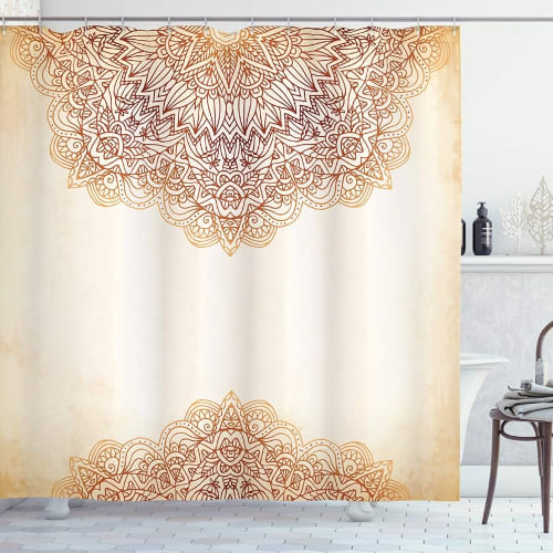 Der wasserabweisende Duschvorhang mit detailreichen Ethno-Mustern ist ein absoluter Bestseller, da er das Badezimmer kostengünstig und pflegeleicht in einen modernen Wellnessbereich verwandelt.